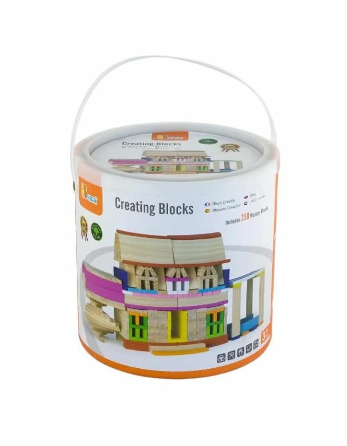 Конструктор деревянный блочный "Архитектура" (250 дет.) в ведре, VIGA 50956