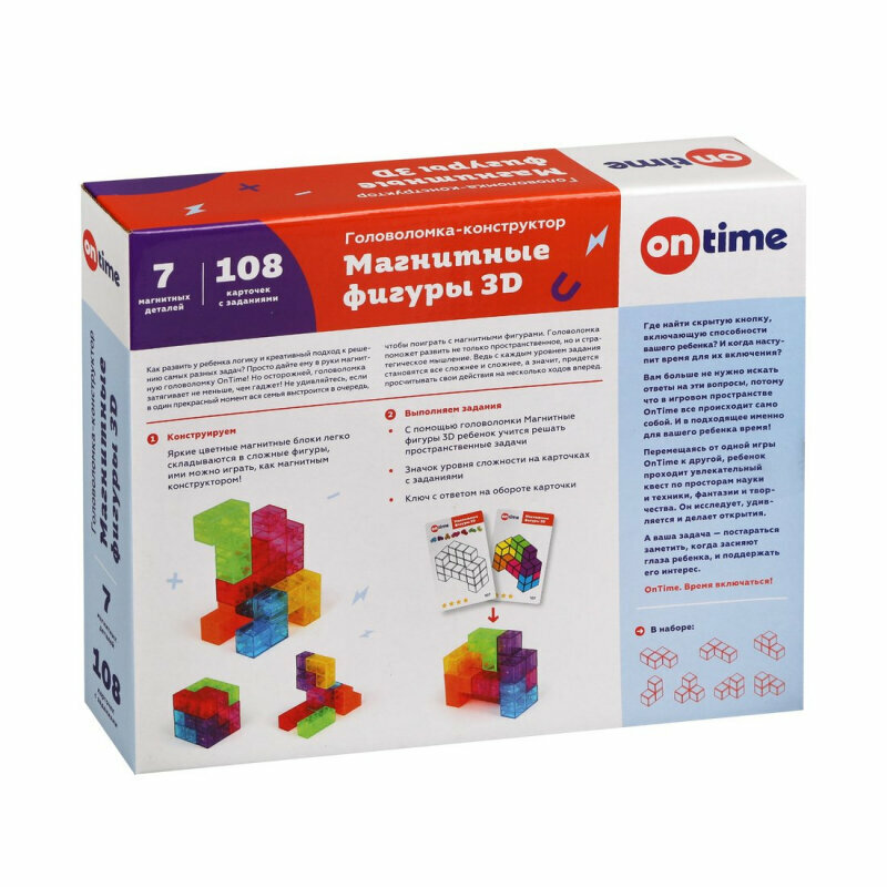 Купить Головоломка-конструктор «Магнитные фигуры 3D» 7 деталей, 108 заданий ON TIME