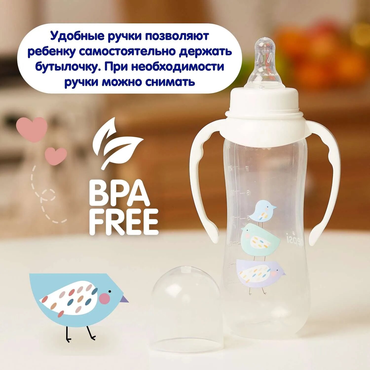 Бутылочка для кормления с ручками с силиконовой соской Mepsi, 250 мл, 4+ мес., "Birds" интересное: