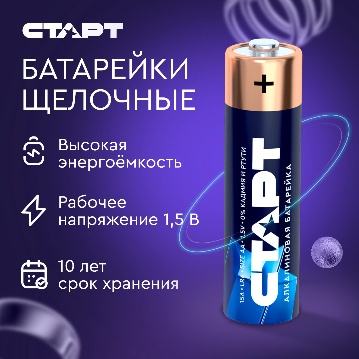 Батарейки Старт - Алкалиновые, типоразмер AA (Пальчиковые), 10 штук в блистере