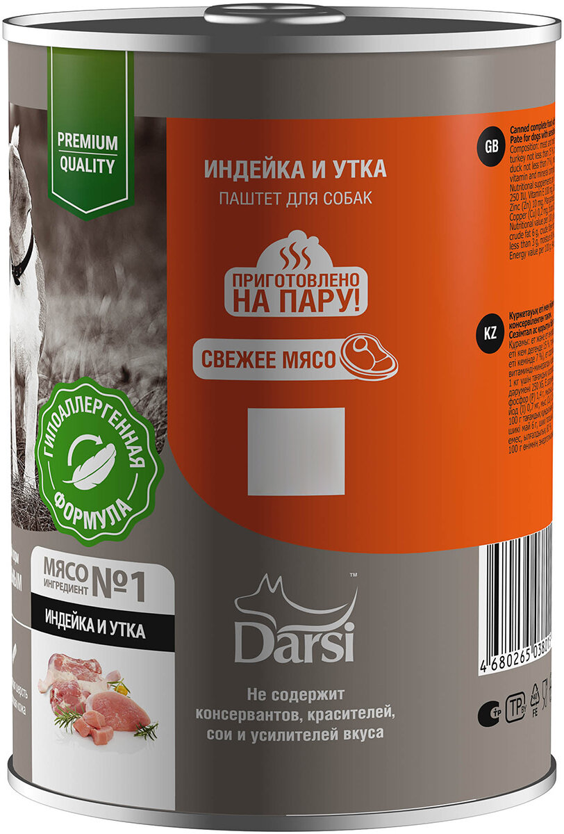 Влажный корм для собак DARSI, Индейка и Утка 410 гр, 9 шт,