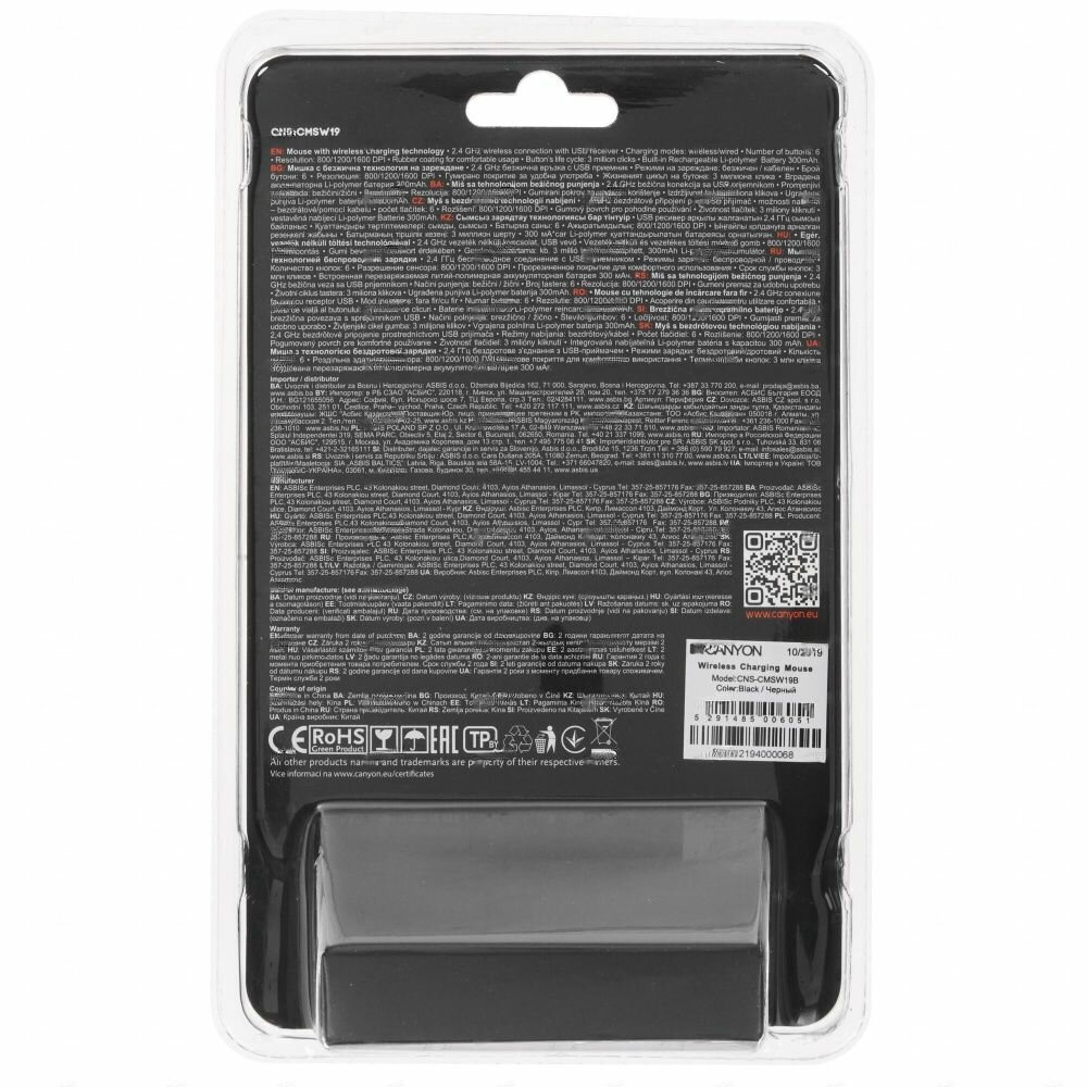 Беспроводная перезаряжаемая мышь с функцией беспроводной зарядки Canyon Mw-19, 800/1200/1600DPI, 6 к . интересное:
