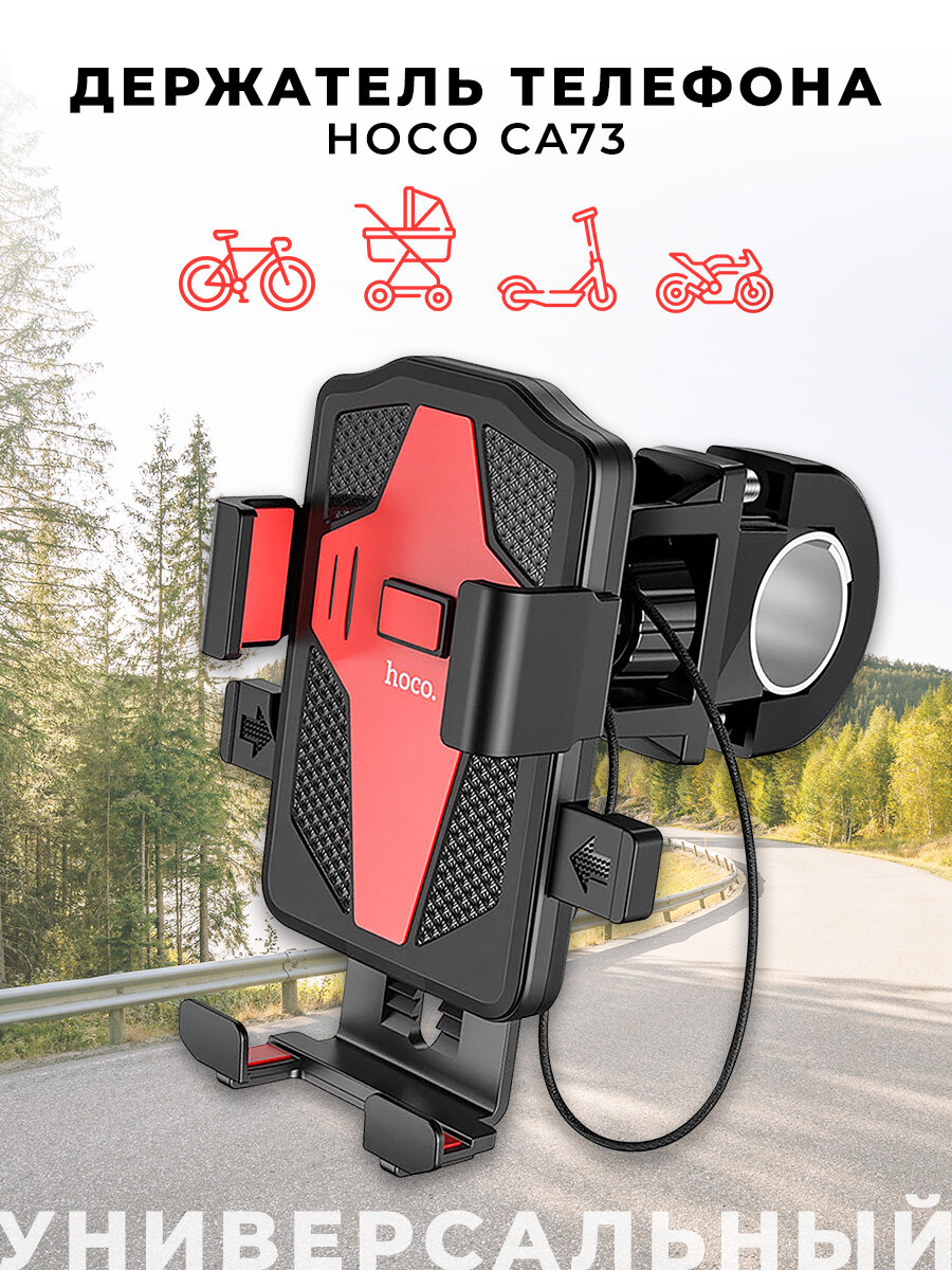 Держатель для телефона Hoco CA73 на руль велосипеда и мотоцикла, универсальный, черный/красный интересное: