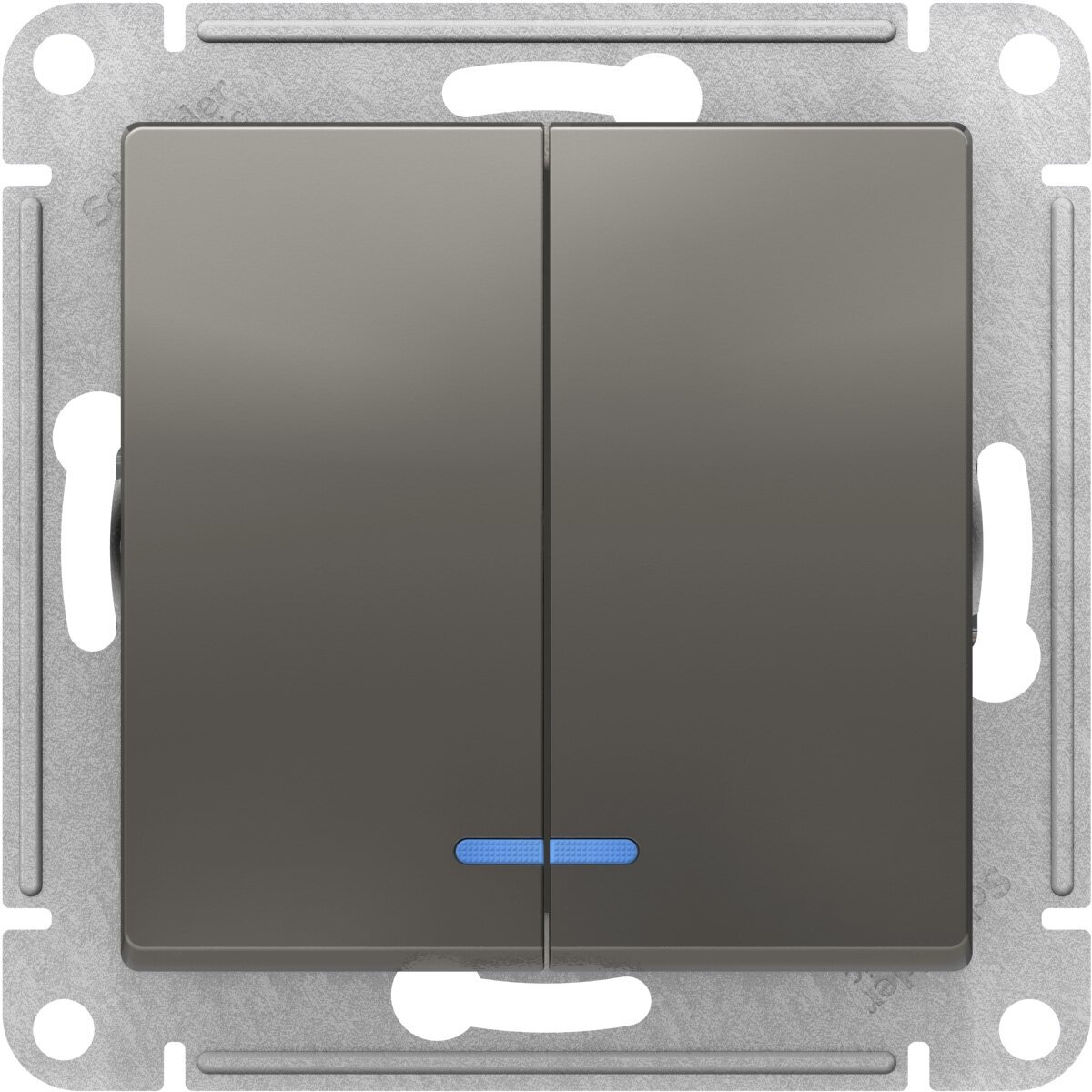 Выключатель 2-клавишный ATLASDESIGN, с подсветкой, скрытый монтаж, мокко | код. ATN000653 | Schneider Electric (4шт. в упак.)