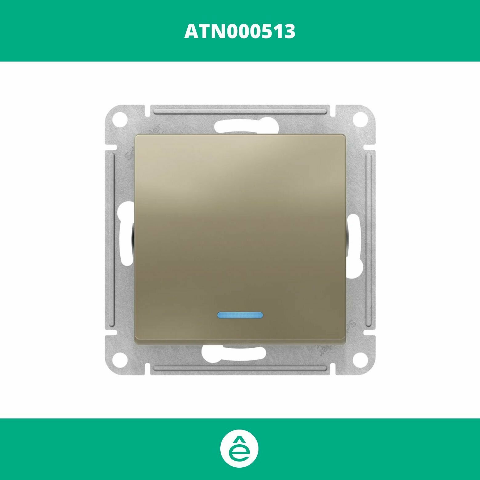 Купить Выключатель 1-клавишный ATLASDESIGN, с подсветкой, скрытый монтаж, шампань | код. ATN000513 | Schneider Electric (6шт.в упак.)