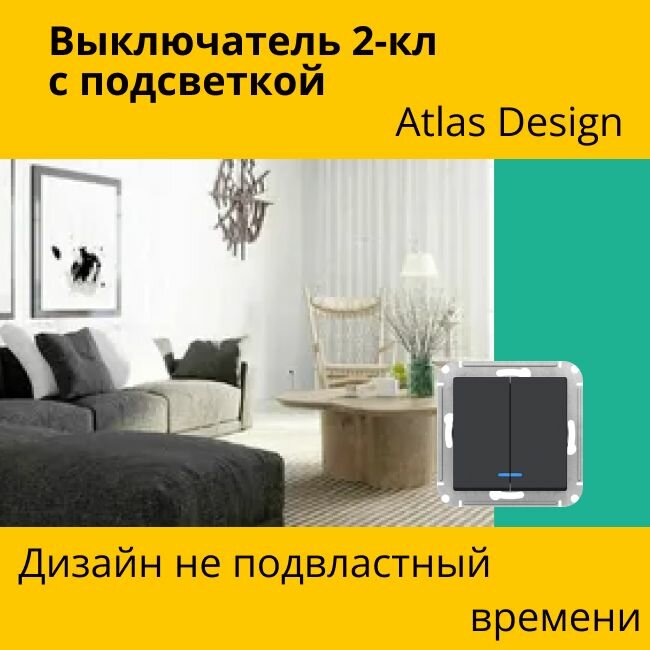 СохранитьВыключатель двуклавишный с подсветкой (индикацией) Schneider Electric (Systeme Electric) Atlas Design механизм карбон ATN001053 4шт интересное: