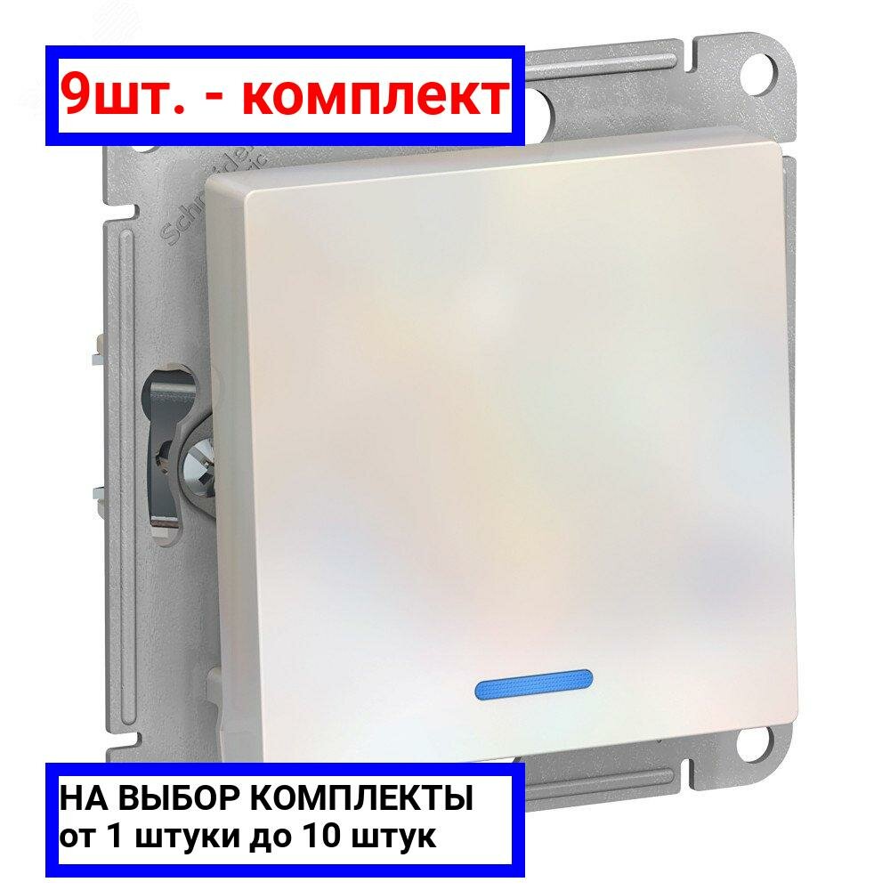 Выключатель 1-клавишный ATLASDESIGN, с подсветкой, скрытый монтаж, жемчуг | код. ATN000413 | Schneider Electric (9шт. в упак.)