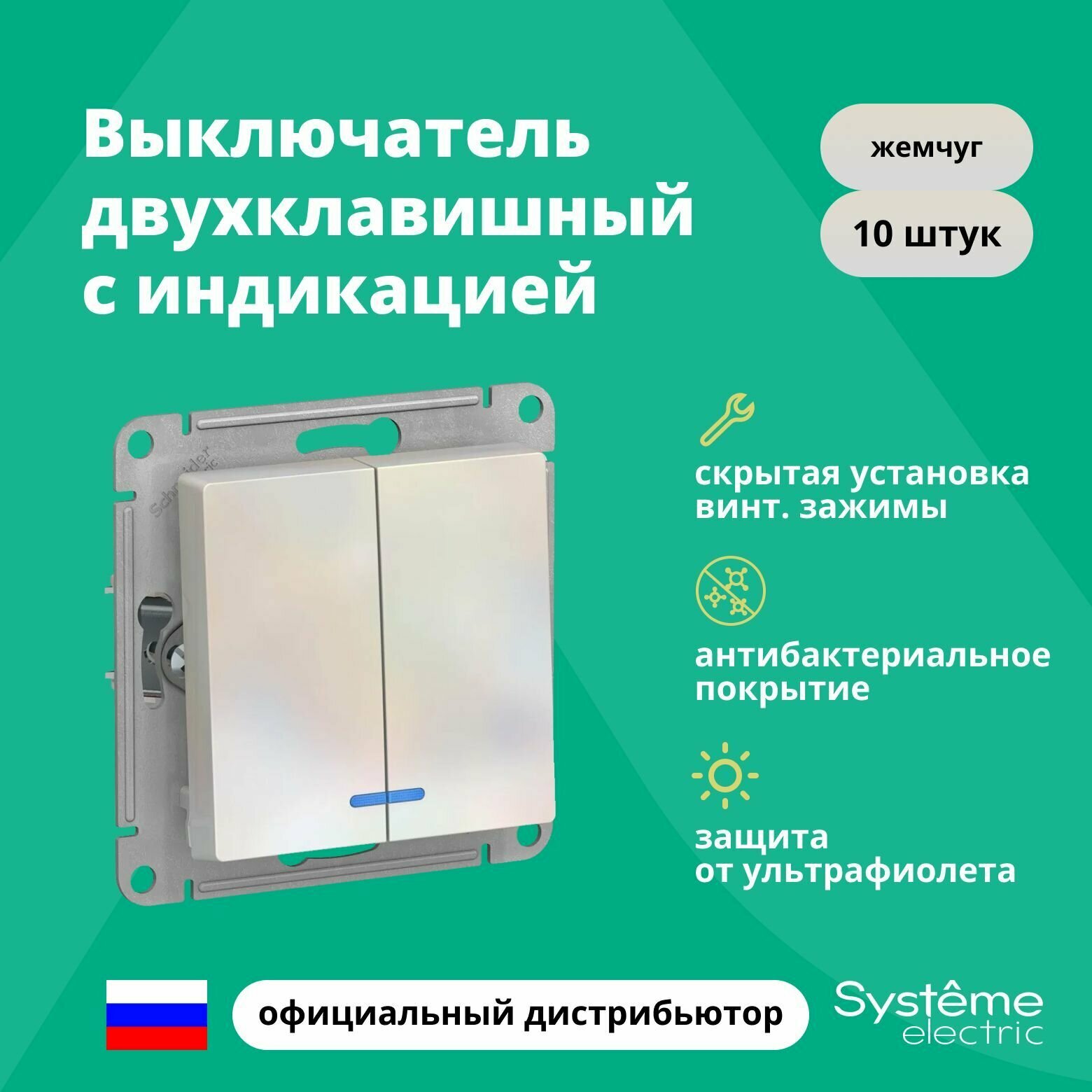 СохранитьВыключатель Schneider Electric (Systeme Electric) Atlas Design 2-клавишный с подсветкой, 10А, 10 AX, Жемчуг - 10 шт. интересное: