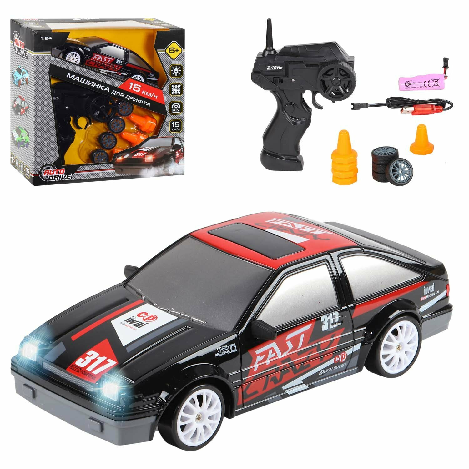 | Дополнительная информация | светодиодные фары, в комплекте 6 конусов для построения своей трассы |