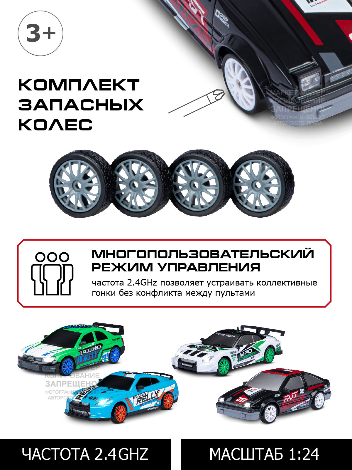 Машинка детская на радиоуправлении ТМ AUTODRIVE, М 1:24, 4 канала, сменные шины, пульт управления, зарядное устройство, свет, черный, JB1167939 интересное: