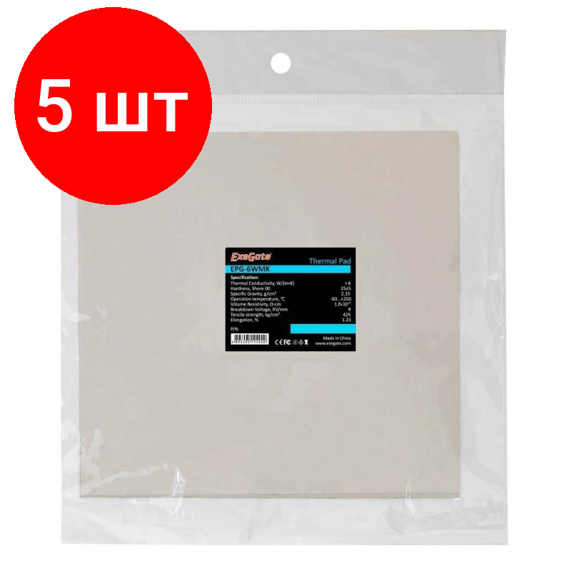Термопрокладка ExeGate EPG-6WMK (50x50x1.5 mm, 6 Вт/ (мК)) (EX282355RUS)