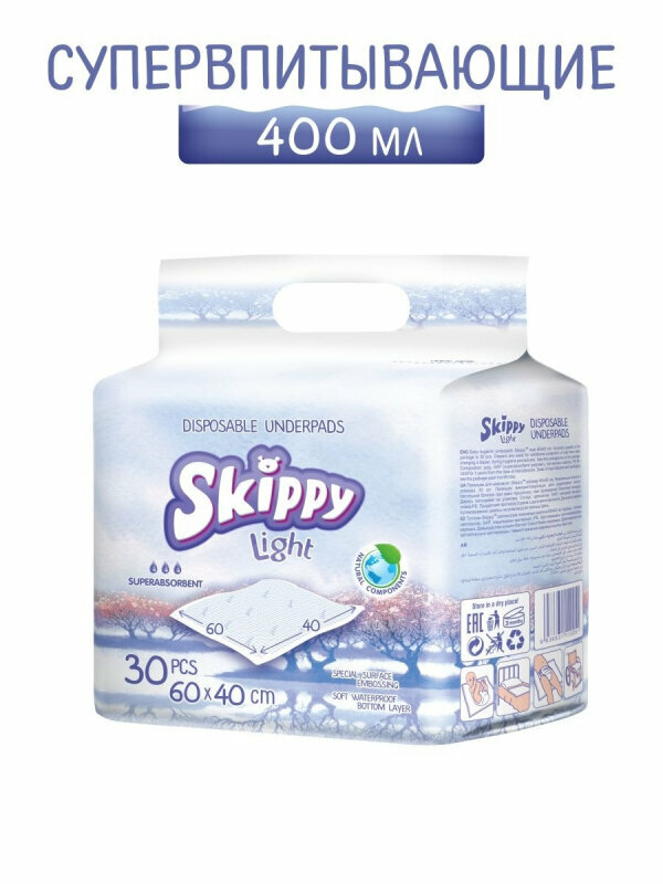 Пеленки гигиенические впитывающие одноразовые Skippy Light 60х40, 30шт интересное: