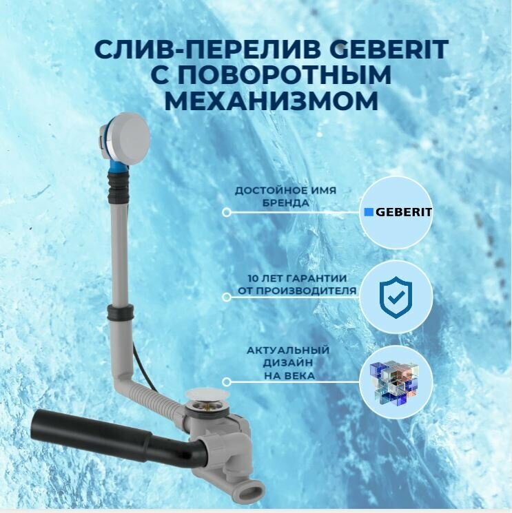 Слив-перелив для ванны, полуавтомат Geberit 150.518.21.1 интересное: