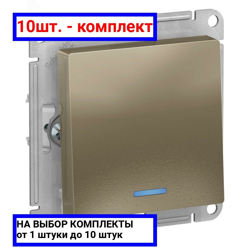 Выключатель 1-клавишный ATLASDESIGN, с подсветкой, скрытый монтаж, шампань | код. ATN000513 | Schneider Electric (6шт. в упак.)