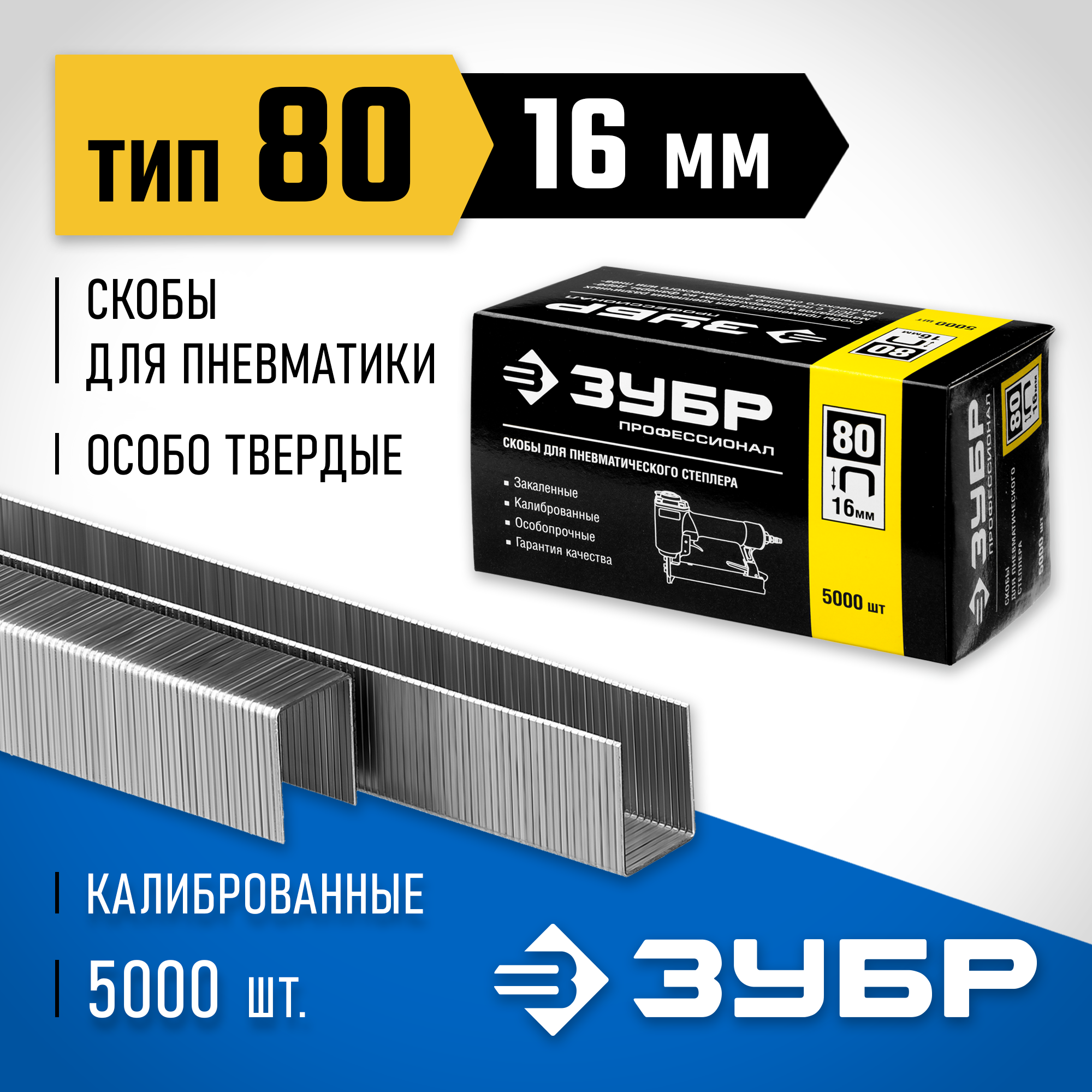 ЗУБР 16 мм скобы для степлера тонкие широкие тип 80, 5000 шт