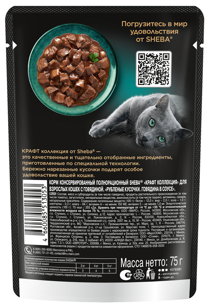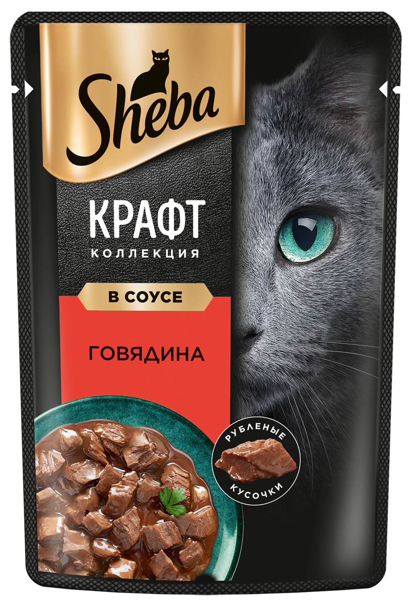 Sheba Влажный корм для кошек (паучи) CRAFT COLLECTION «Рубленые кусочки. Говядина в соусе» 1023150310244558 0,075 кг 51112 (26 шт)