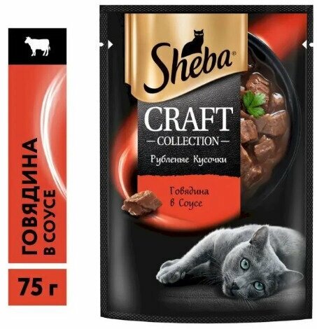 Sheba Влажный корм для кошек (паучи) CRAFT COLLECTION «Рубленые кусочки. Говядина в соусе» 1023150310244558 0,075 кг 51112 (10 шт)