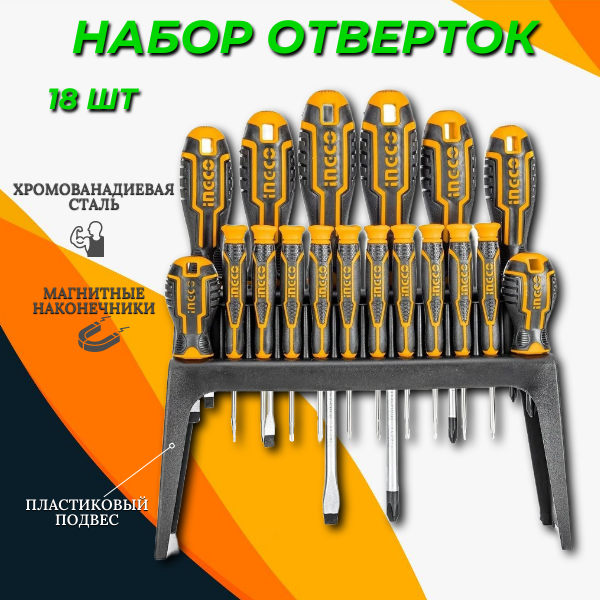 Набор отверток 18 шт на подвесе INGCO интересное: