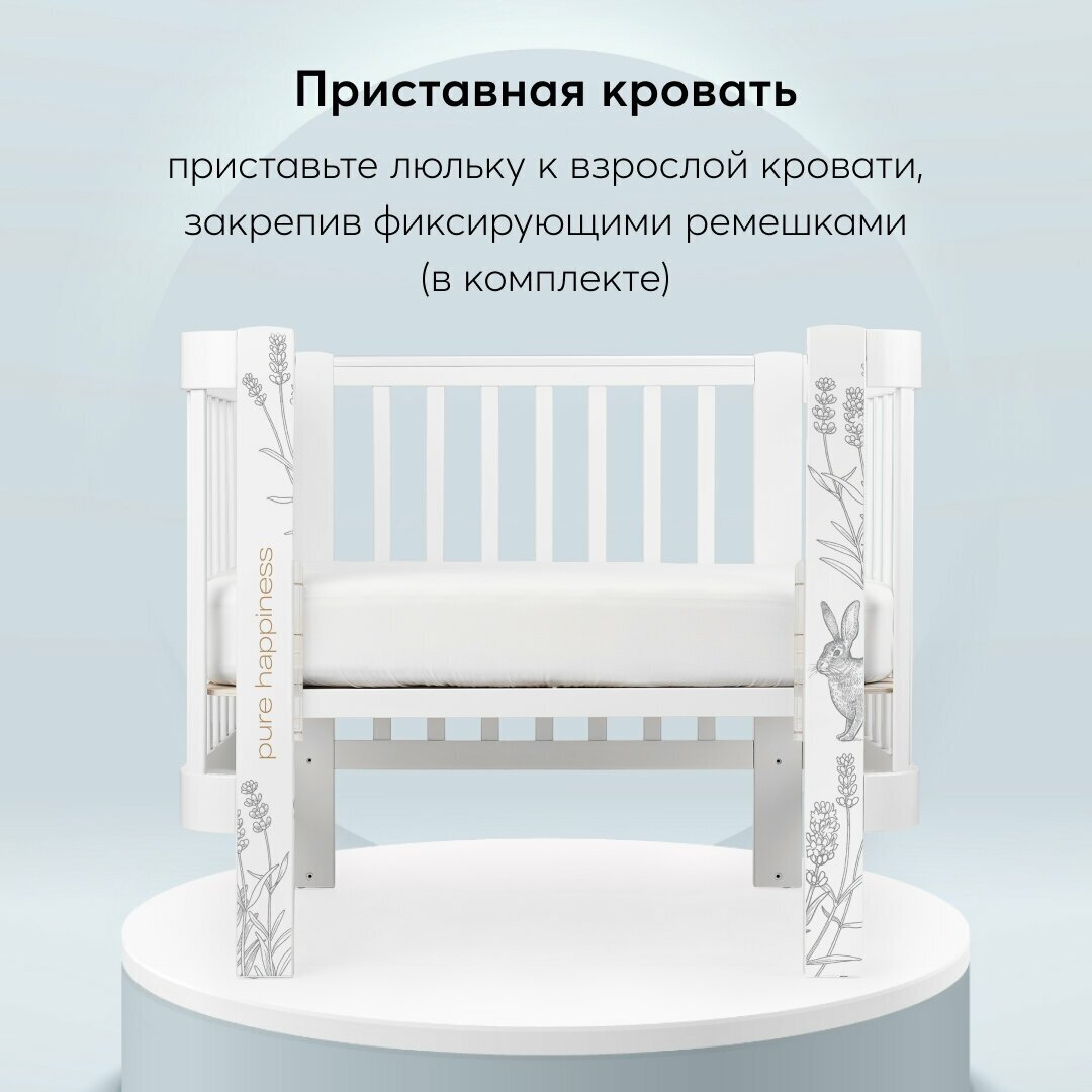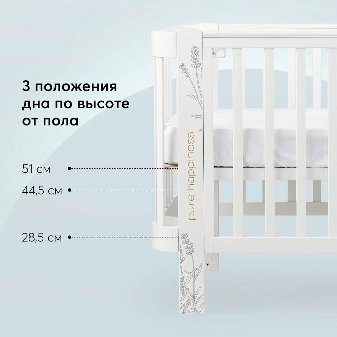 95024 Кроватка для новорожденных трансформер с опускающейся стенкой от 0, Happy Baby MOMMY LOVE, люлька-кроватка, колёса, маятник, белая интересное: