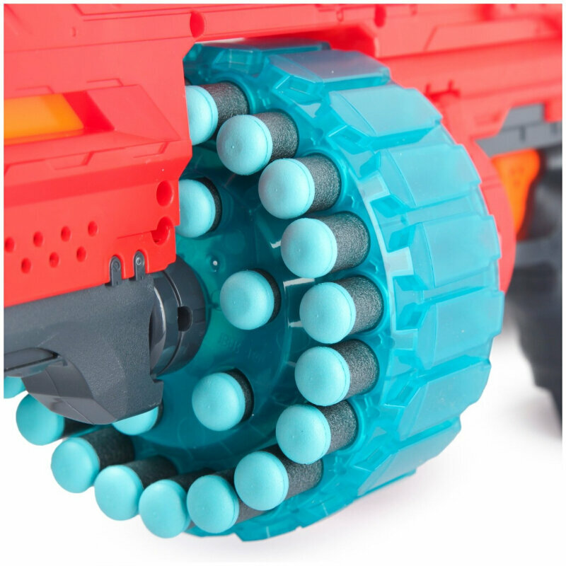 | Отзыв: | Отличный бластер. Колесо с пульками двигается само,но надо всё равно передвигать затвор. Можно и самому также крутить колесо. Ребенку 8 лет очень понравилось.пульки летят метра на 4. |