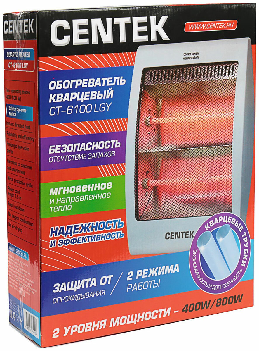 Ниже Вы можете прочитать отзывы на Centek Обогреватель кварцевый CT-6100 LGY, 2 уровня мощности 400 Вт/800 Вт CT-6100 LGY, ознакомится с подробными характеристиками, посмотреть интересные обзоры и фотографии на Centek Обогреватель кварцевый CT-6100 LGY, 2 уровня мощности 400 Вт/800 Вт CT-6100 LGY.