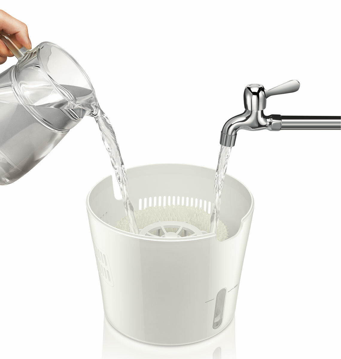 Работает практически бесшумно, имеется ночной режим при котором цвет индикаторов становится меньше. Отличный дизайн, корпус гладкий и отлично впишется в любой интерьер. Воду удобно наливать, отметка "Мах" виден с внешней и с внутренней стороны, так что лишнюю воду не нальете. Испаряется холодный воздух, из-за этого рядом с увлажнителем ощущается прохлада,и самое главное нет никакой влаги и налета. Можно не опасаясь за хорошую мебель, ставить рядом. За резервуаром легко ухаживать, так как, там оседают мелкие частицы, можно смыть под краном. |