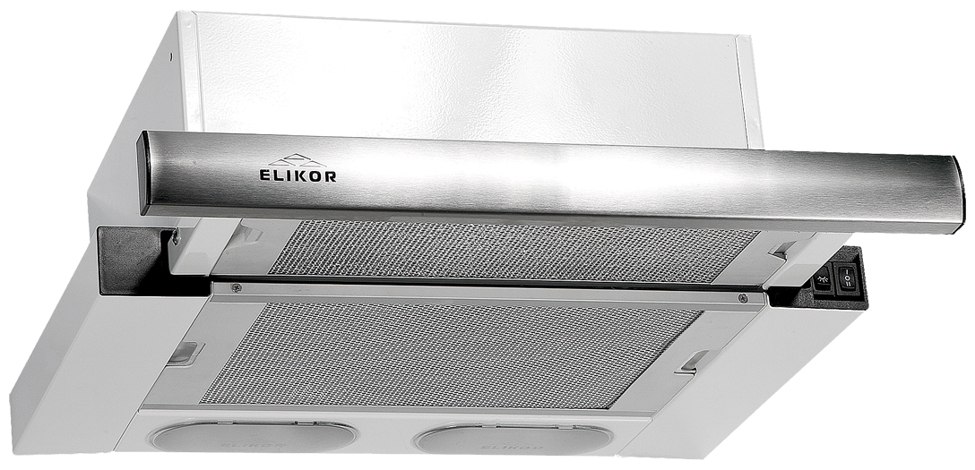 Вытяжка кухонная 45 см ELIKOR Интегра, встраиваемая, телескопическая, производительность - 400 м3/ч, управление клавишное, 2 скорости, лампы накаливания, белый / серебристый