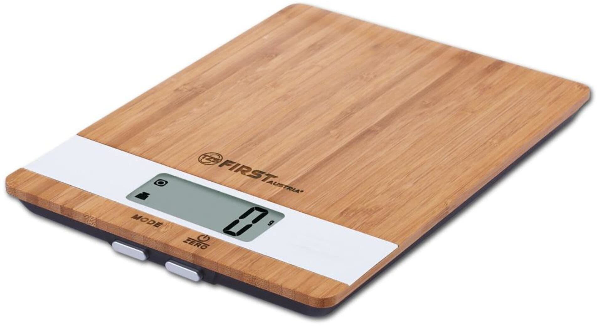 Весы кухонные FIRST FA-6410 Special Edition, бамбуковая платформа, электронные, 5 кг, 1 гр, тарокомпенсация, белый