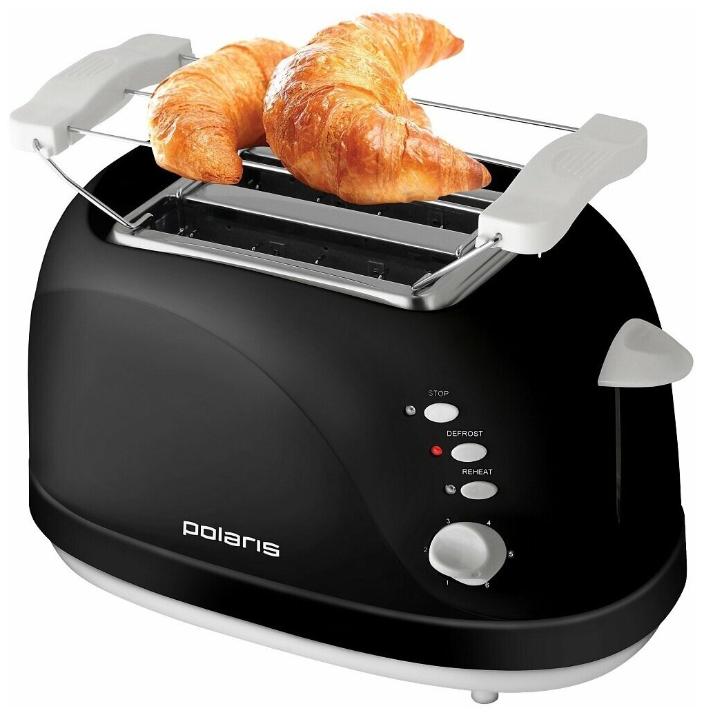 Электрический тостер Polaris PET 0702L, 750W, с функцией размораживания, Черный
