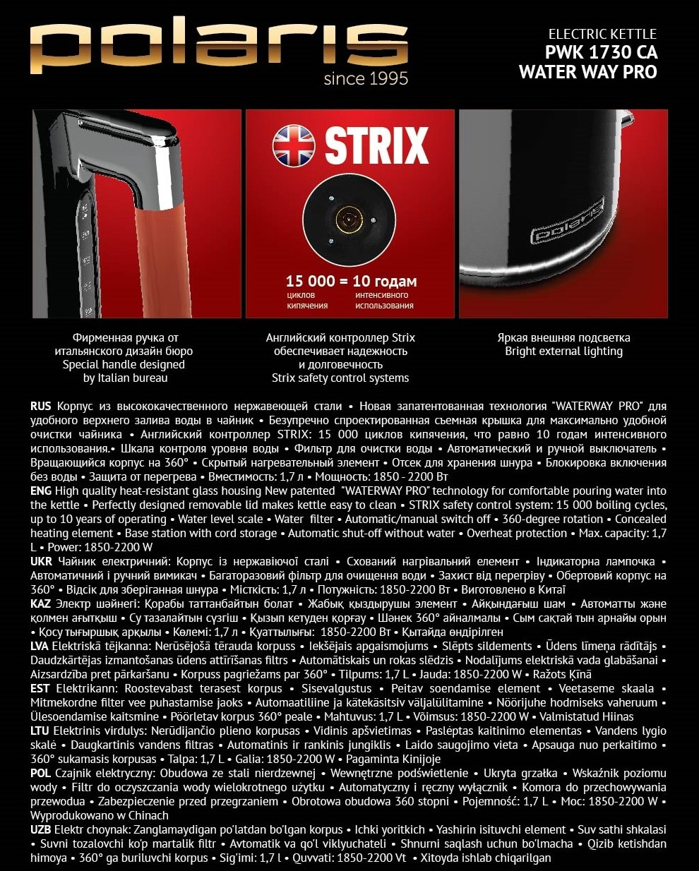 Ниже Вы можете прочитать отзывы на Чайник Polaris Water Way Pro PWK 1730 CA черный, ознакомится с подробными характеристиками, посмотреть интересные обзоры и фотографии на Чайник Polaris Water Way Pro PWK 1730 CA черный.