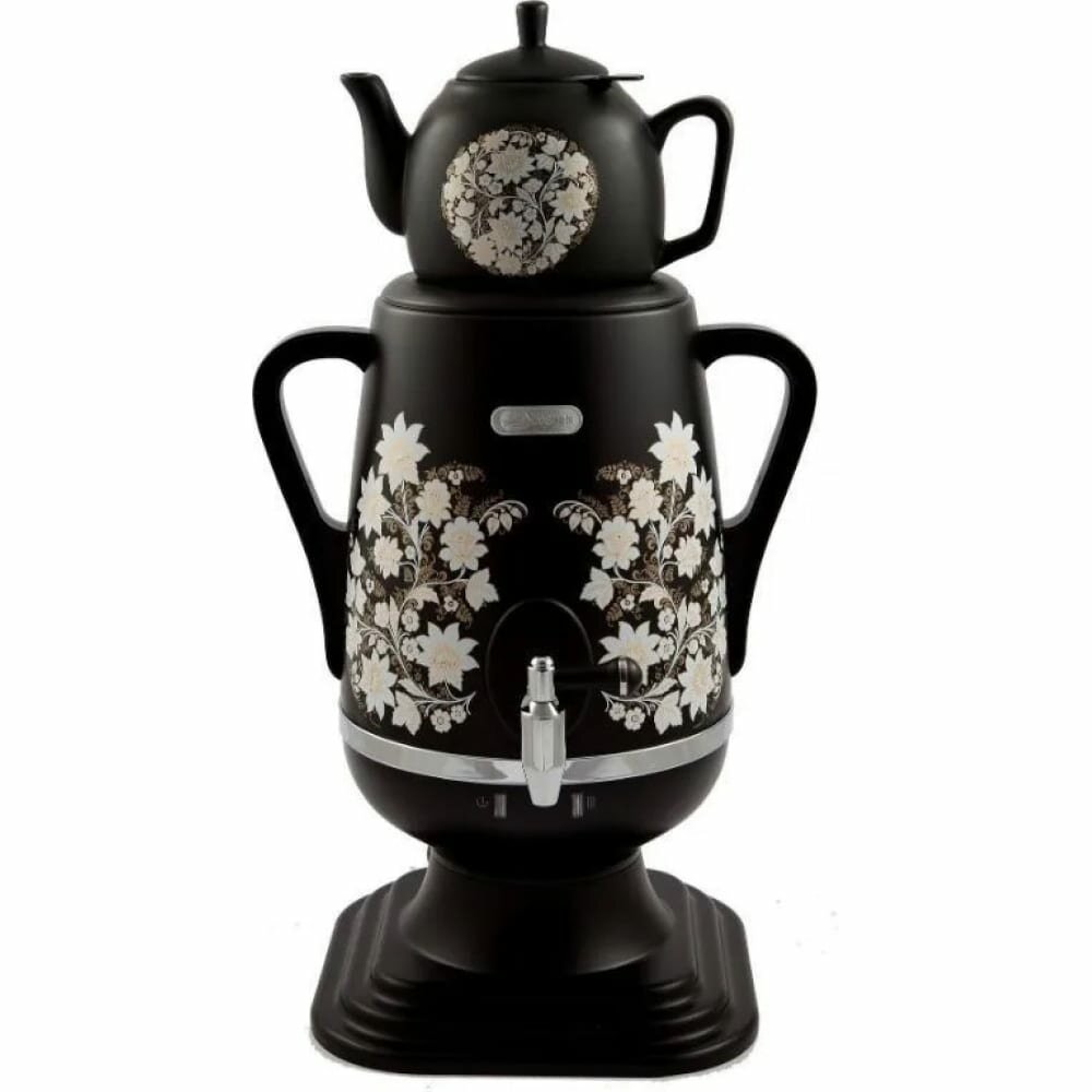 Самовар "Добрыня" DO-423, пластик, 4 л, 1850 Вт, черный с цветами