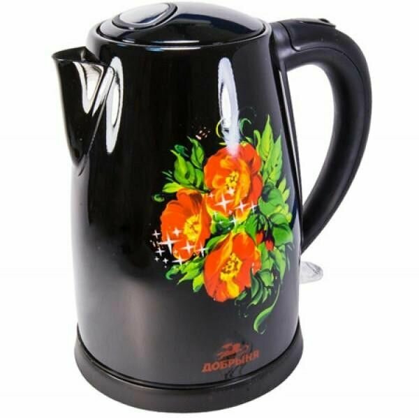 Добрыня Чайник электрический "Добрыня" DO-1215, металл, 2 л, 2200 Вт, черный с цветами