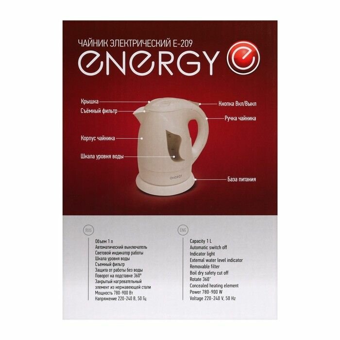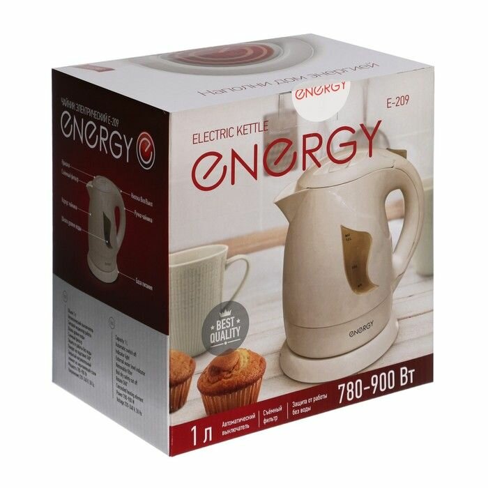 Чайник электрический Energy E-209 пластиковый,1л,бежевый, 780-900 Вт, 220В (в уп. 12 шт) 153111