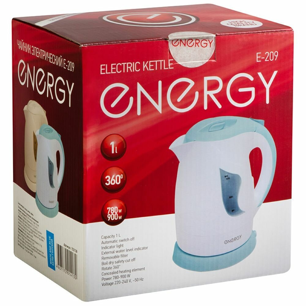 Электрические чайники Energy Чайник электрический ENERGY E-209, пластик, 1 л, 850 Вт, бело-голубой