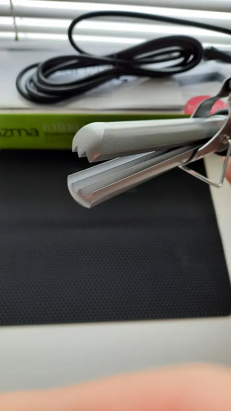 | Отзыв: | В целом норм, но в идеале я бы хотела более широкое гофре, хотя бы сантиметра 4-5, и отделено хорошую плойку с широким диаметром (у этой диаметр 1 на 2 см примерно, не круглый) |