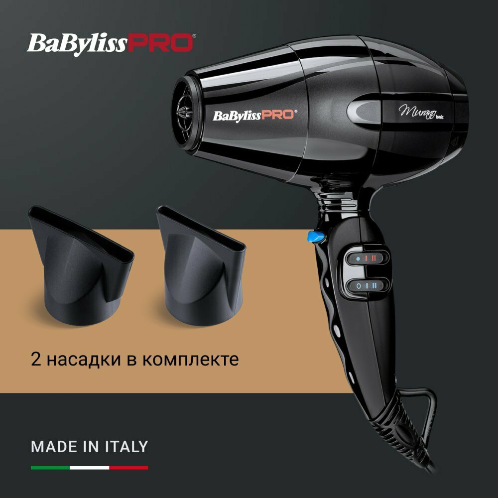 Фен BaByliss Pro Murano, 2000 Вт, ионизация, 2 насадки, черный