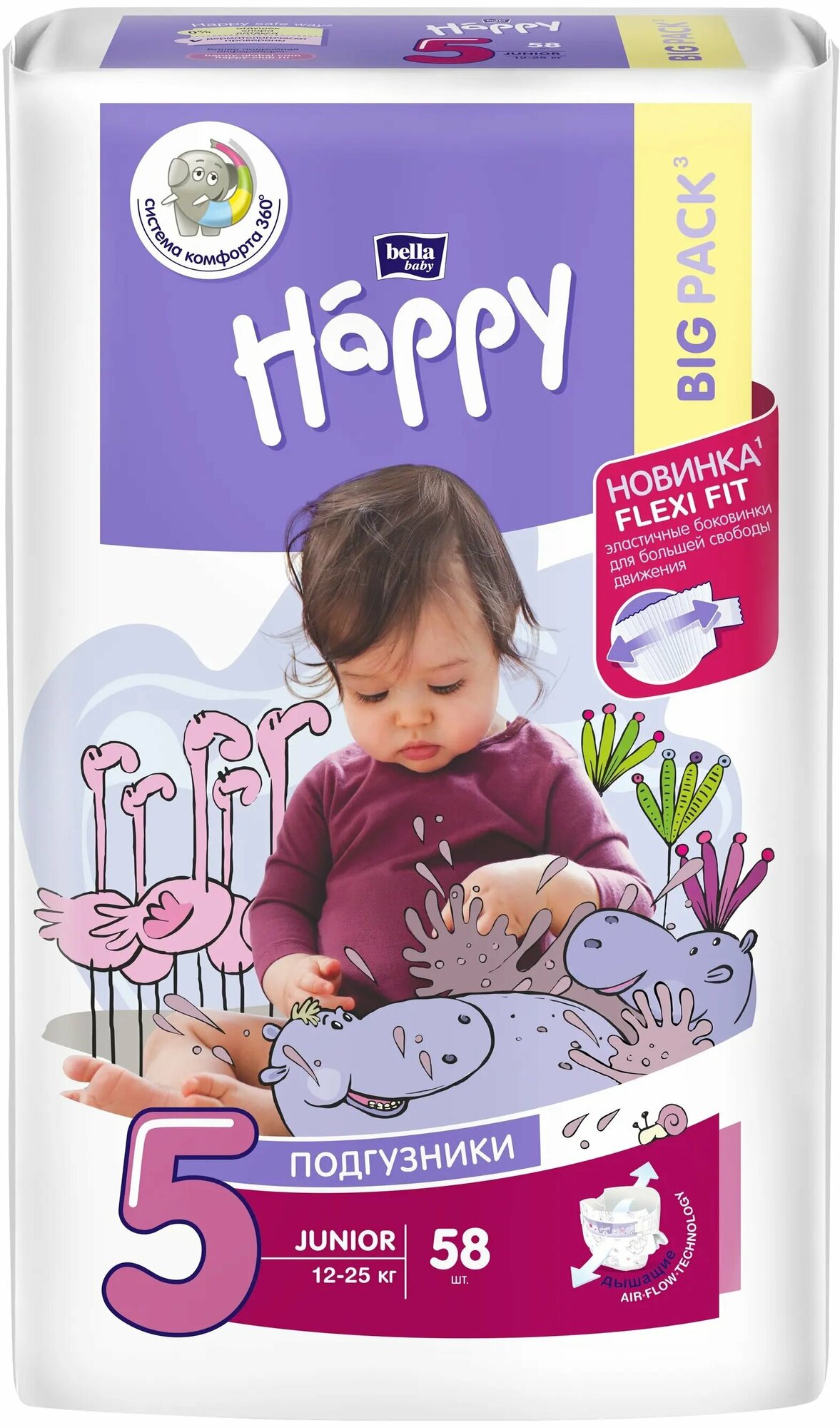 Подгузники для детей classic bella baby Happy Junior, размер 5 (вес 12-25 кг), 58 шт.
