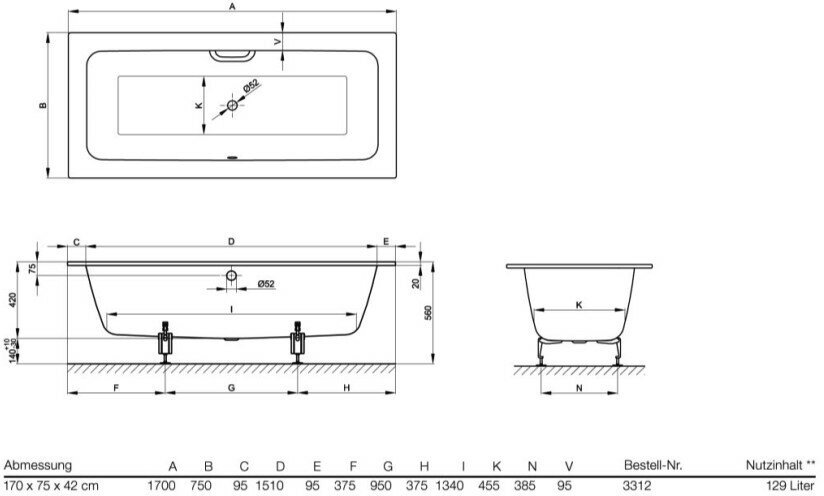 Стальная ванна Bette One 170х75 3312-000 интересное: