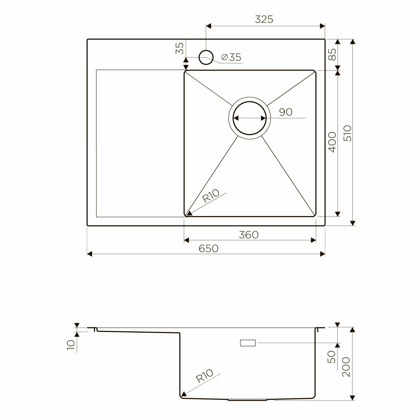 Кухонная мойка OMOIKIRI Akisame 65-LG-R 4973084 (510 x 650 мм), врезная, нержавеющая сталь, светлое золото