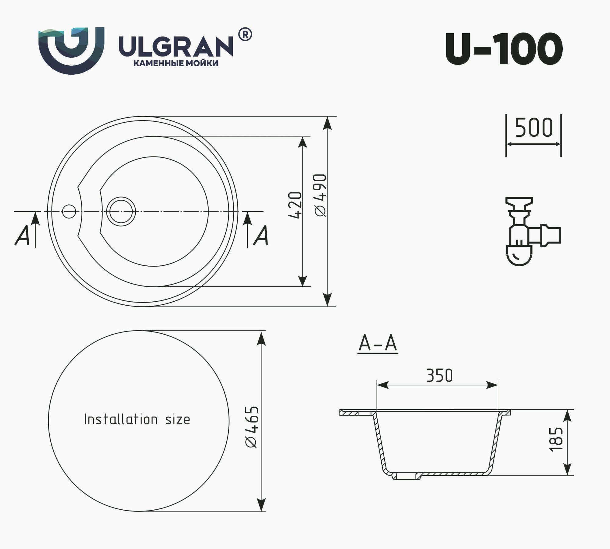 Мойка для кухни Ulgran U-100 (-341, ультра-белый)