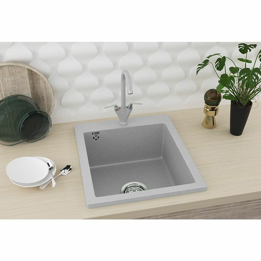 Мойка кухонная Ulgran из искусственного мрамора квадратная U-404, цвет: серый, база: 39.5х47 см, арт. U-404-310
