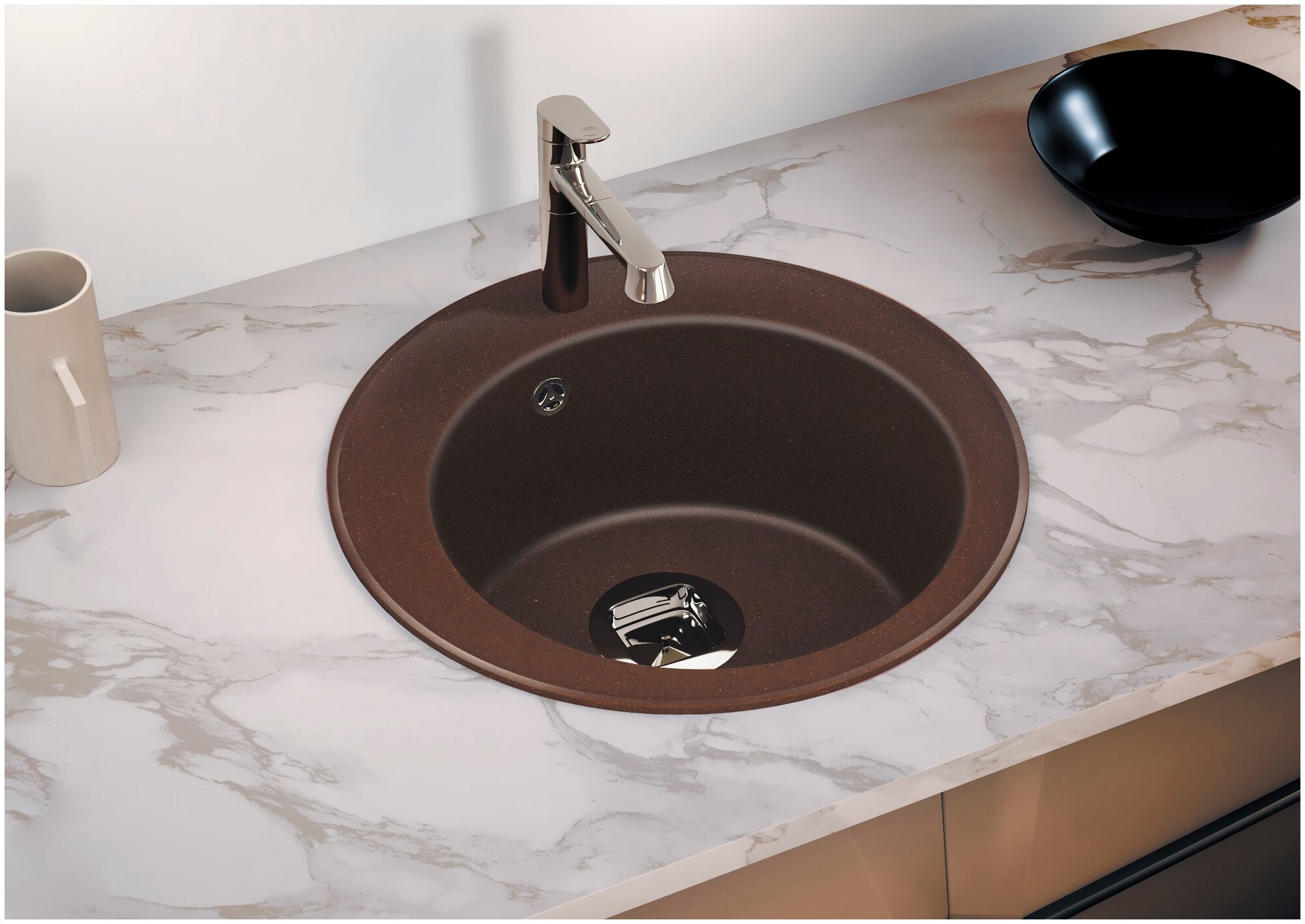 Мойка для кухни TOLERO Classic R-108 круглая каменная Кварц с отверстием под смеситель (№817 Коричневый)
