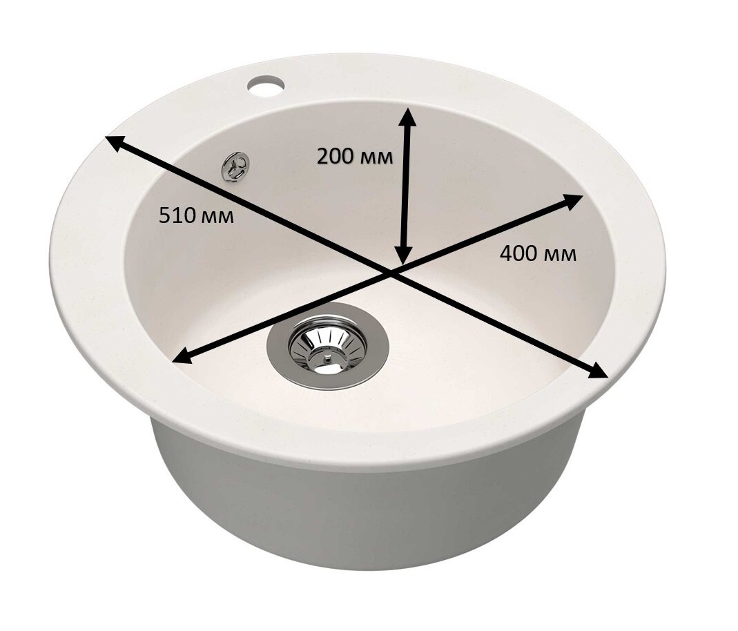 Мойка для кухни врезная каменная Dr. Gans ГАЛА-510, цвет черный, круглая, 510х510х217 мм