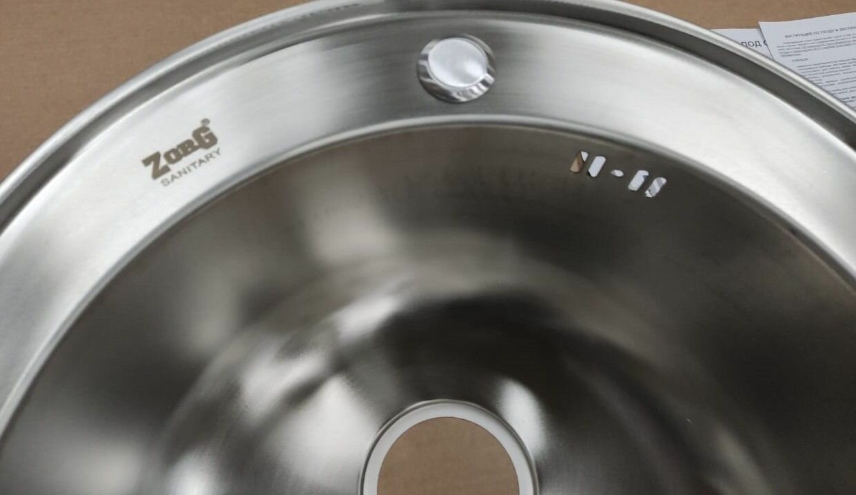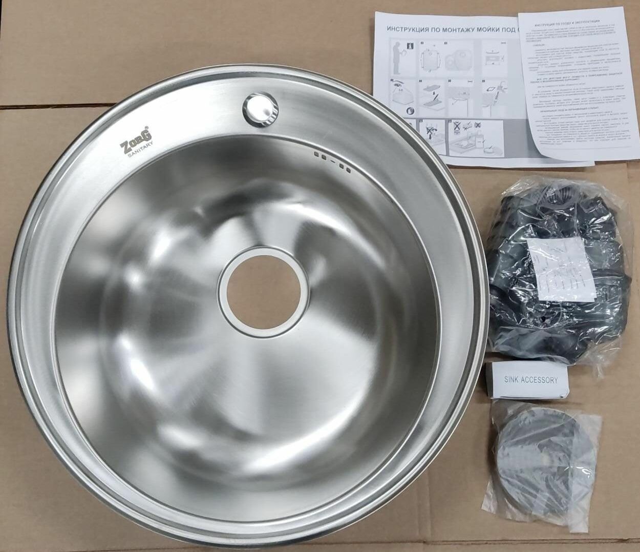 Кухонная мойка Zorg ZR 510/205, нержавеющая сталь, матовая брашинг, круглая, с платформой, с сифоном и решеткой