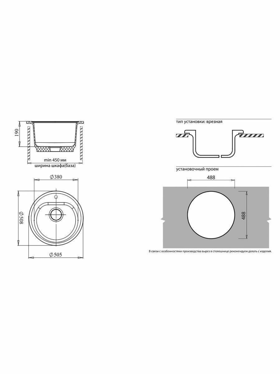 Мойка GRANFEST GF-R510 D =510 мм, круглая (топаз)