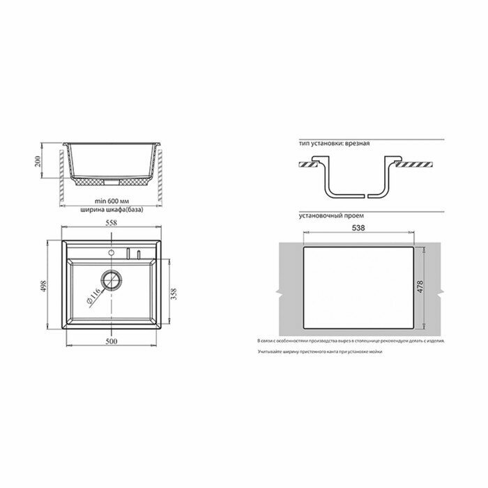 | Плюсы: | Отличная, широкая, глубокая. Что редко, отличная инструкция с размерами пропила столешницы. Смеситель тоже встал без проблем. |