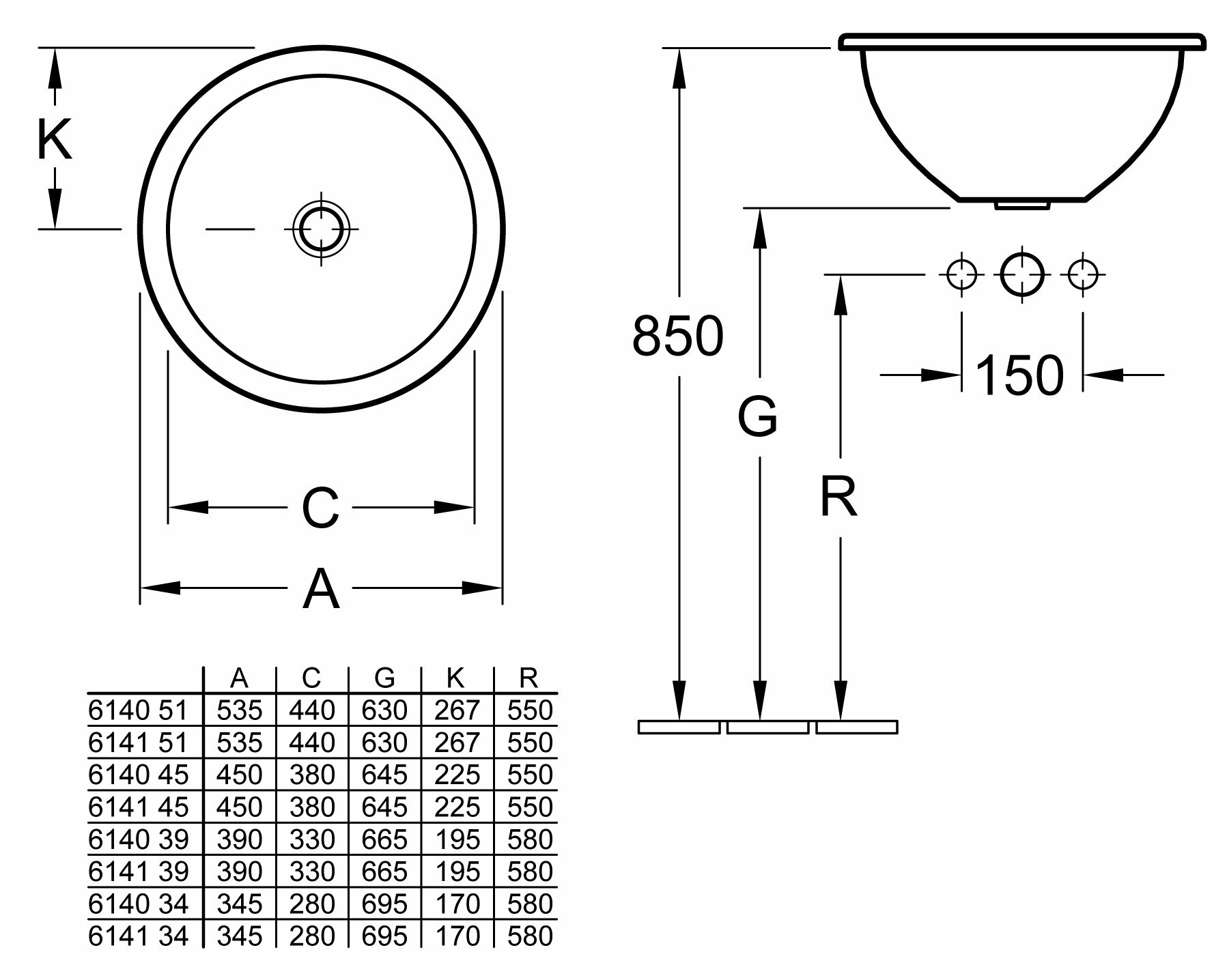 Раковина встраиваемая сверху Villeroy & Boch Loop & Friends круглая 45 см 61404501
