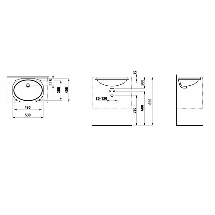 Birova 53х40,5см, встраиваемая снизу раковина, санфарфор, без отв. для смесителя, с остекленным переливом, арт. 8.1119.1.000.000.1, Laufen