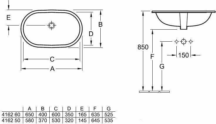 Раковина встраиваемая VILLEROY&BOCH O'NOVO 65 (4162 6001)