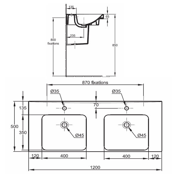 | Диаметр сливного отверстия (мм) | 45 |